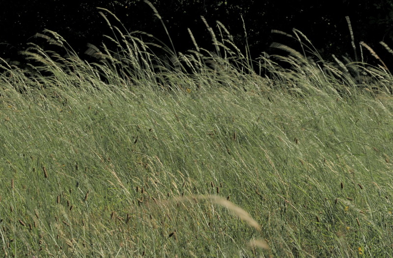 Plan fixe herbes sous le vent fort.